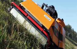 Die Mähraupen der Firma KommTek bieten Ihnen Sicherheit für Fahrer und Maschine - Steigungen bis zu 55 % sind risikolos zu bewältigen. Der Fahrer steht in sicherer Entfernung.